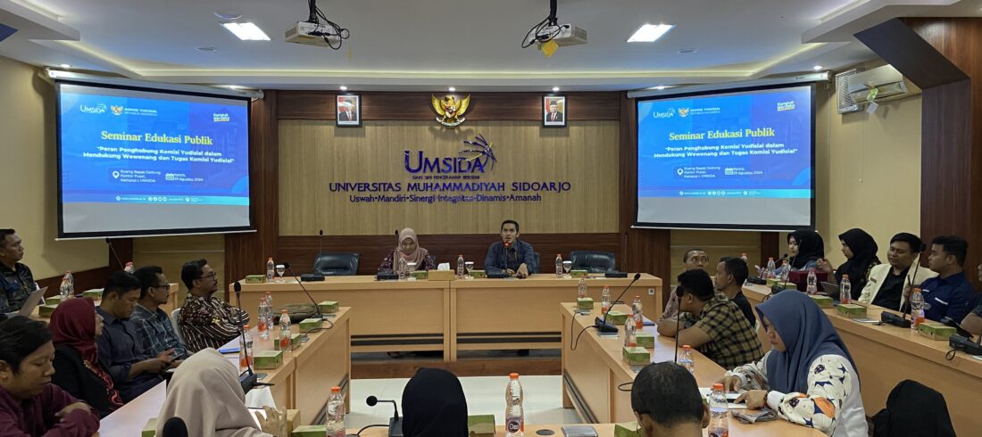 hukum.umsida.ac.id- Pada Kamis, 29 Agustus 2024 dilaksanakan Seminar Edukasi Publik dengan Tema “Peran Penghubung KY dalam Mendukung Fungsi dan Wewenang KY” yang dilaksanakan di Ruang Rapat Rektorat Kampus 1 UMSIDA. Kegiatan ini dihadiri oleh peserta undangan eksternal mulai dari MHH PDM Sidoarjo, Pasuruan dan Mojokerto,...Read More
