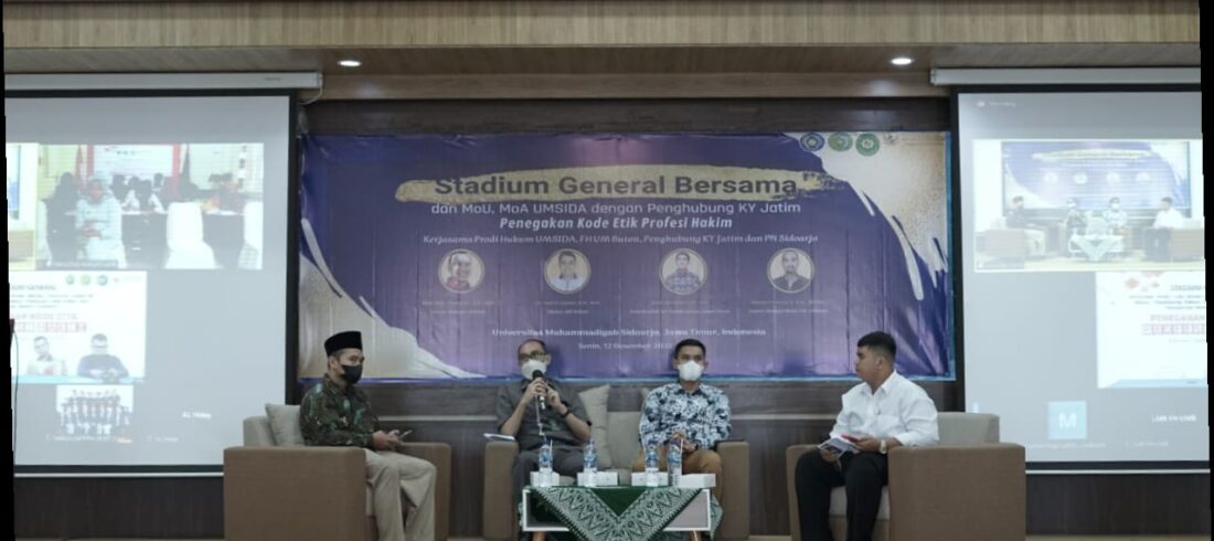 hukum.umsida.ac.id – Profesi hakim merupakan profesi yang menjunjung tinggi nilai moral di dalamnya, maka ada kode etik untuk profesi hakim, sehingga layak untuk dibahas, Hal itu membuat, progam studi (Prodi) Hukum Universitas Muhammadiyah Sidoarjo (Umsida) selenggarakan Stadium General dengan mengusung tema Penegakan Kode Etik Profesi...Read More