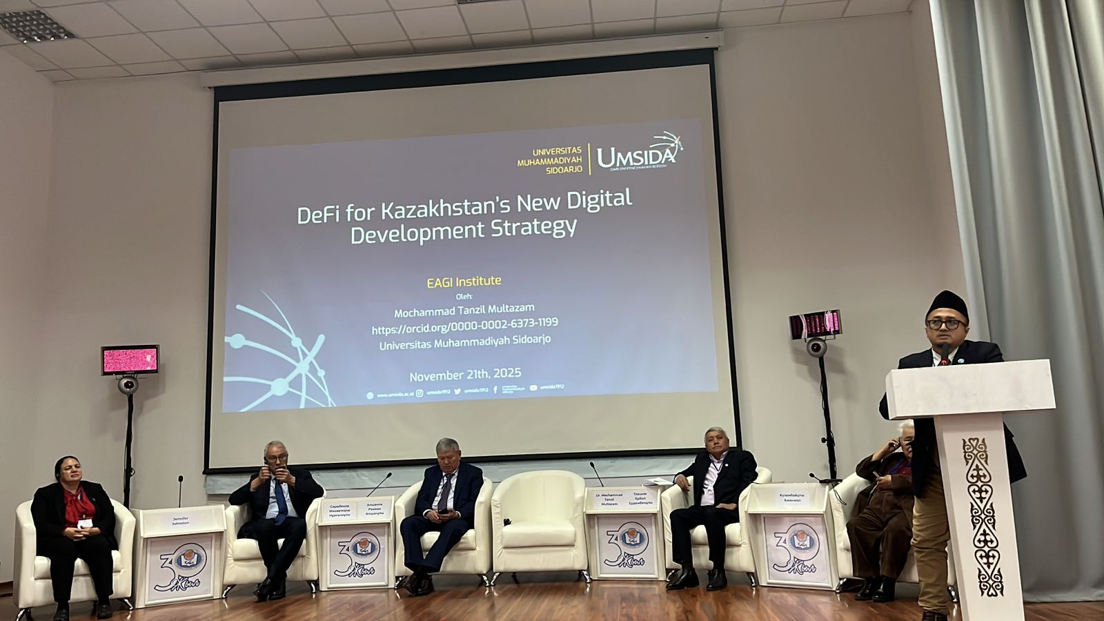 hukum.umsida.ac.id – Astana, Kazakhstan. Dosen Hukum Universitas Muhammadiyah Sidoarjo (UMSIDA) yang mengampu bidang Hukum Siber dan Kejahatan Teknologi Informasi, Mochammad Tanzil Multazam, menjadi salah satu pembicara pada seminar internasional tanggal 21 November 2025 yang diselenggarakan oleh A.K. Kussayinov Eurasian Humanities Institute (EAGI Institute), Kazakhstan.